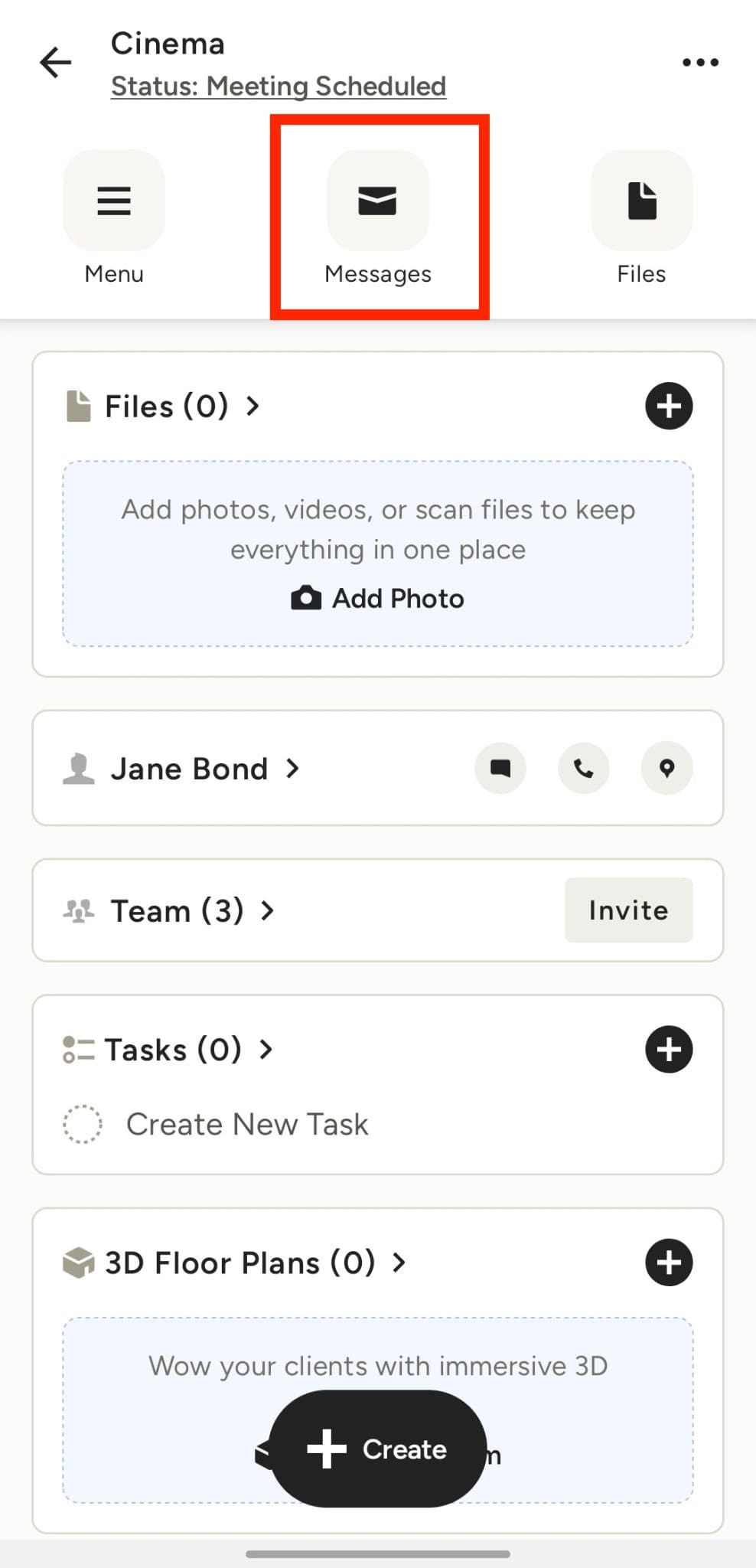 On the mobile app, you communicate with leads through messages, but you communicate with clients through chat.