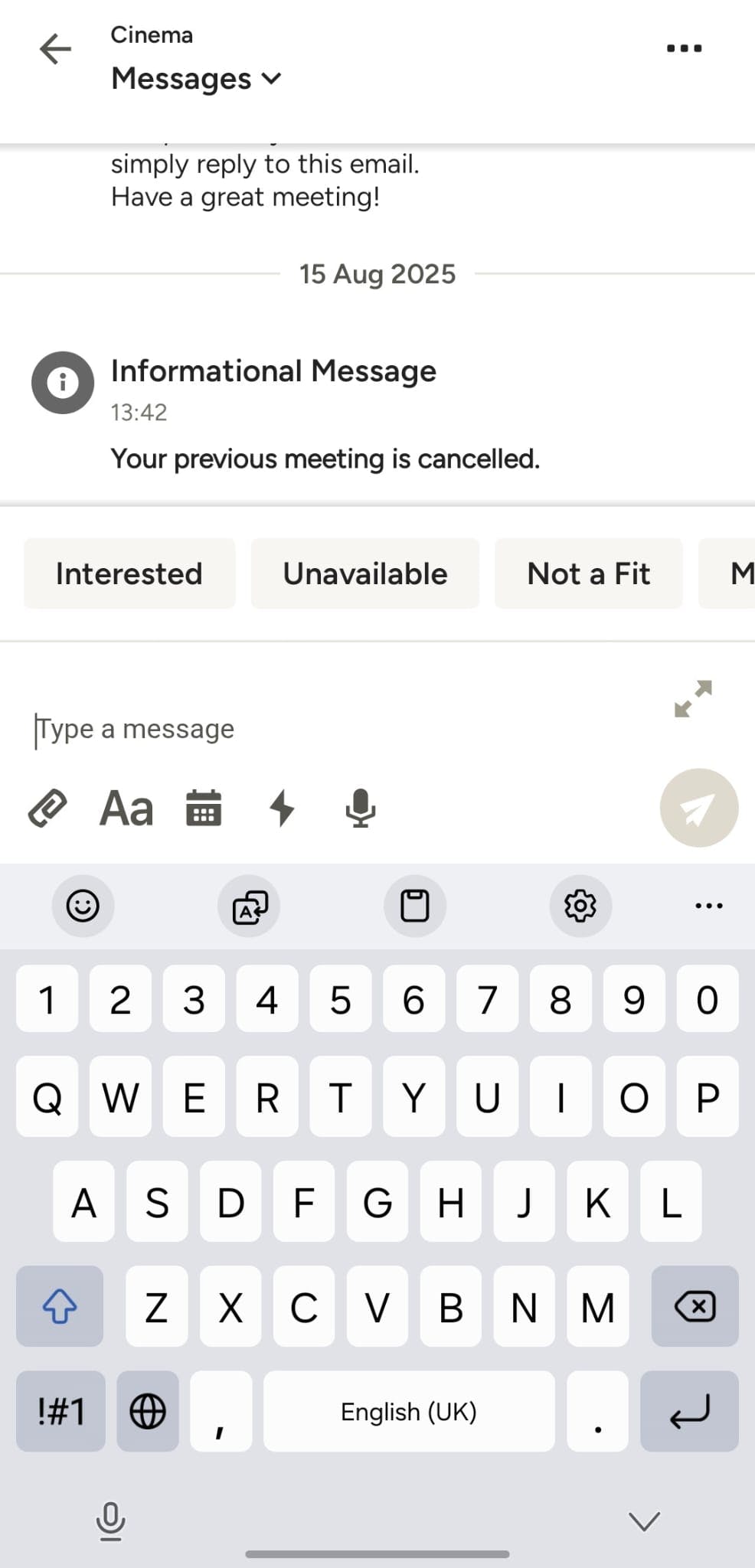 From here, you can select and edit one of our short pre-populated templates – Interested, Unavailable, Not a Fit – or you can select Customise Templates to create your own.