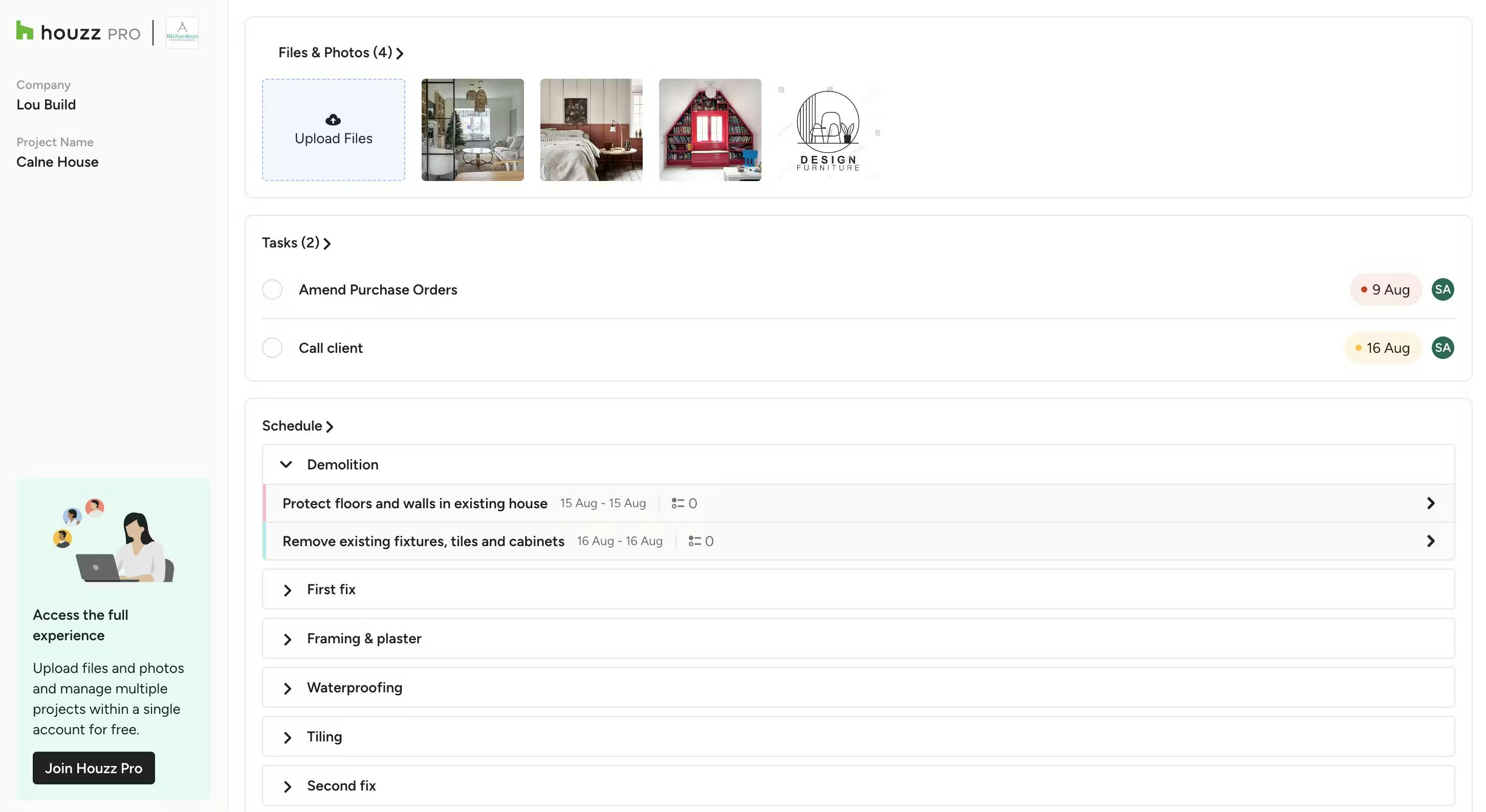 If you are working with subcontractors on your projects, Houzz Pro makes it easy to collaborate, communicate, and ensure you're on the same page.