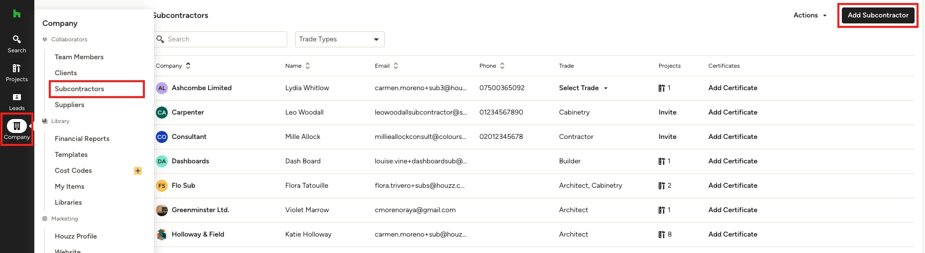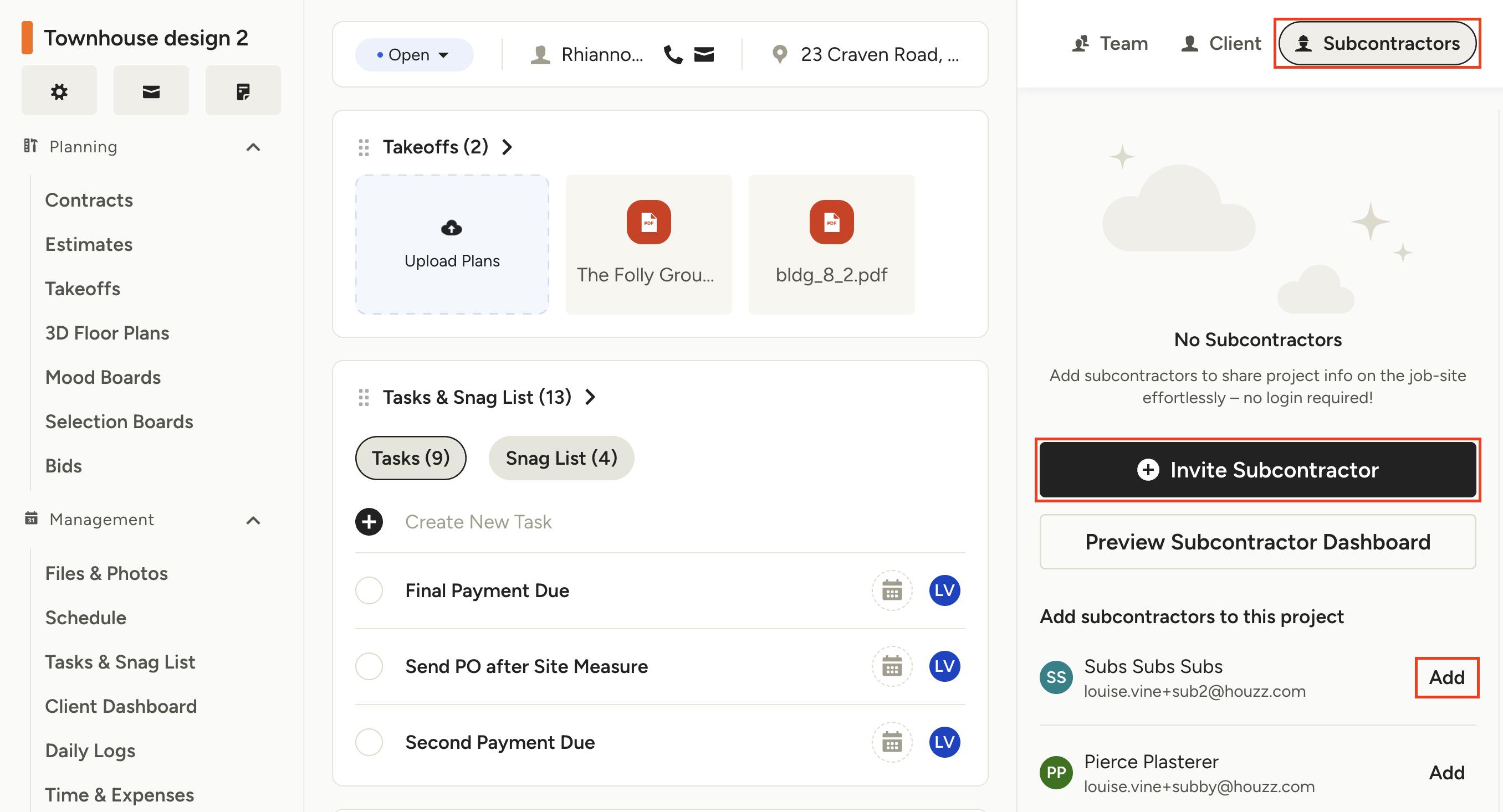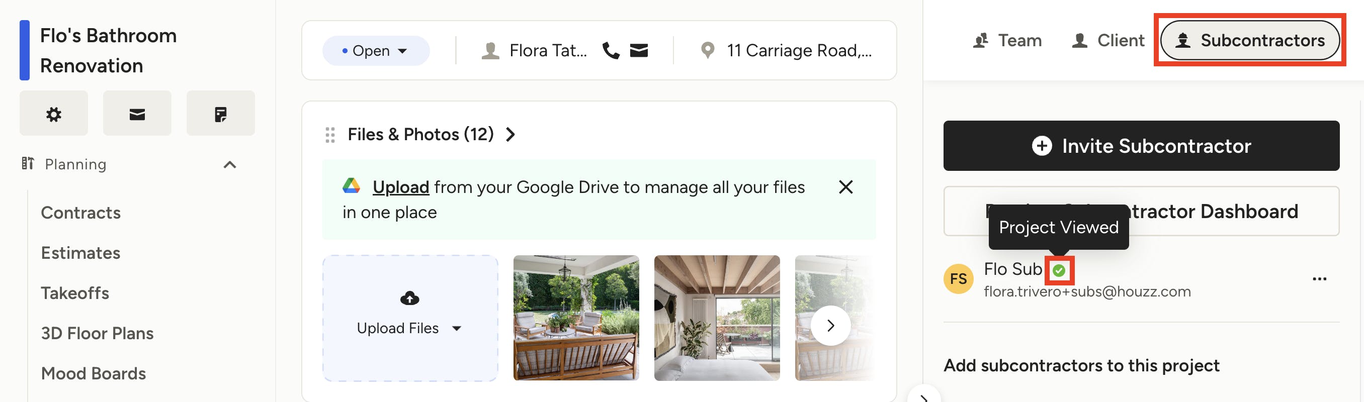 In this article, we will go over how to add a subcontractor, edit subcontractor information, share information, and better understand the subcontractor view of Houzz Pro.