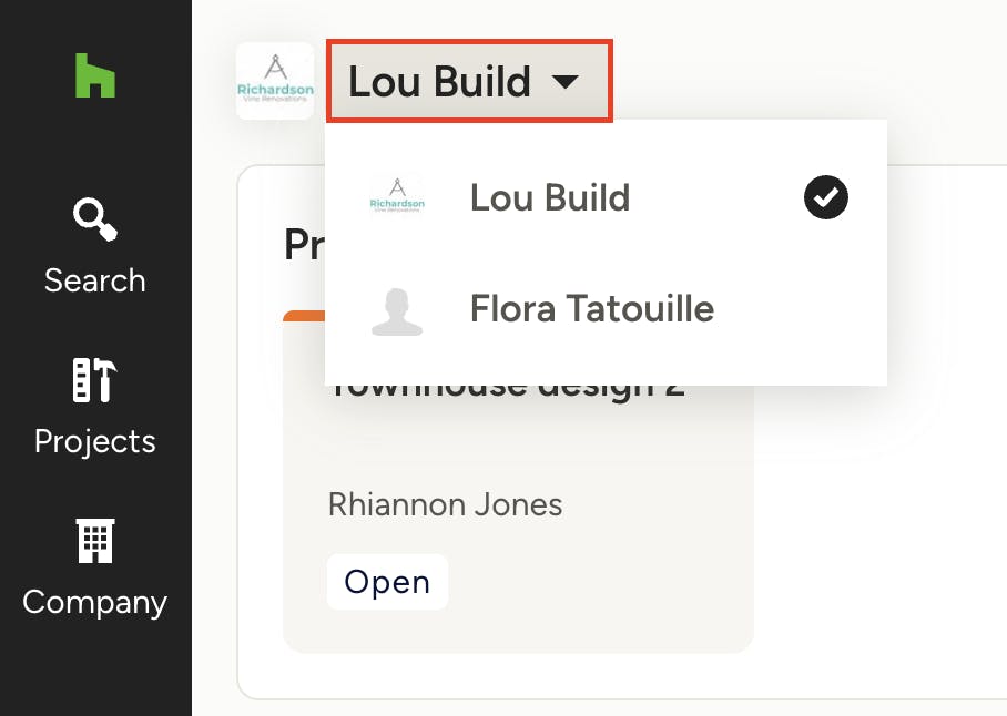Subcontractors often work with multiple businesses and need to be able to switch between teams to access each dashboard. If they choose not to sign up or sign in to Houzz Pro, they will have to access each project's subcontractor dashboard individually, via the link in the respective email invitations. If they do decide to create a free account or log in, they can easily switch between teams by using one of two methods.