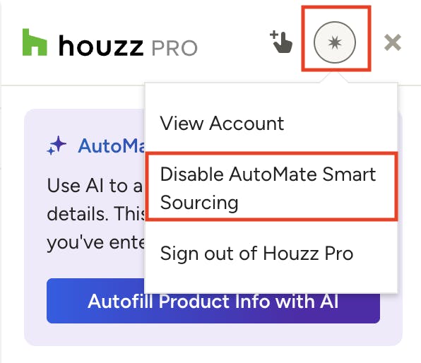If you don’t want the Clipper to pre-fill the product details for you, simply disable Smart Sourcing. Click the circular star icon at the top of the Clipper and select “Disable AutoMate Smart Sourcing.” You can enable it again from this same menu at any time.