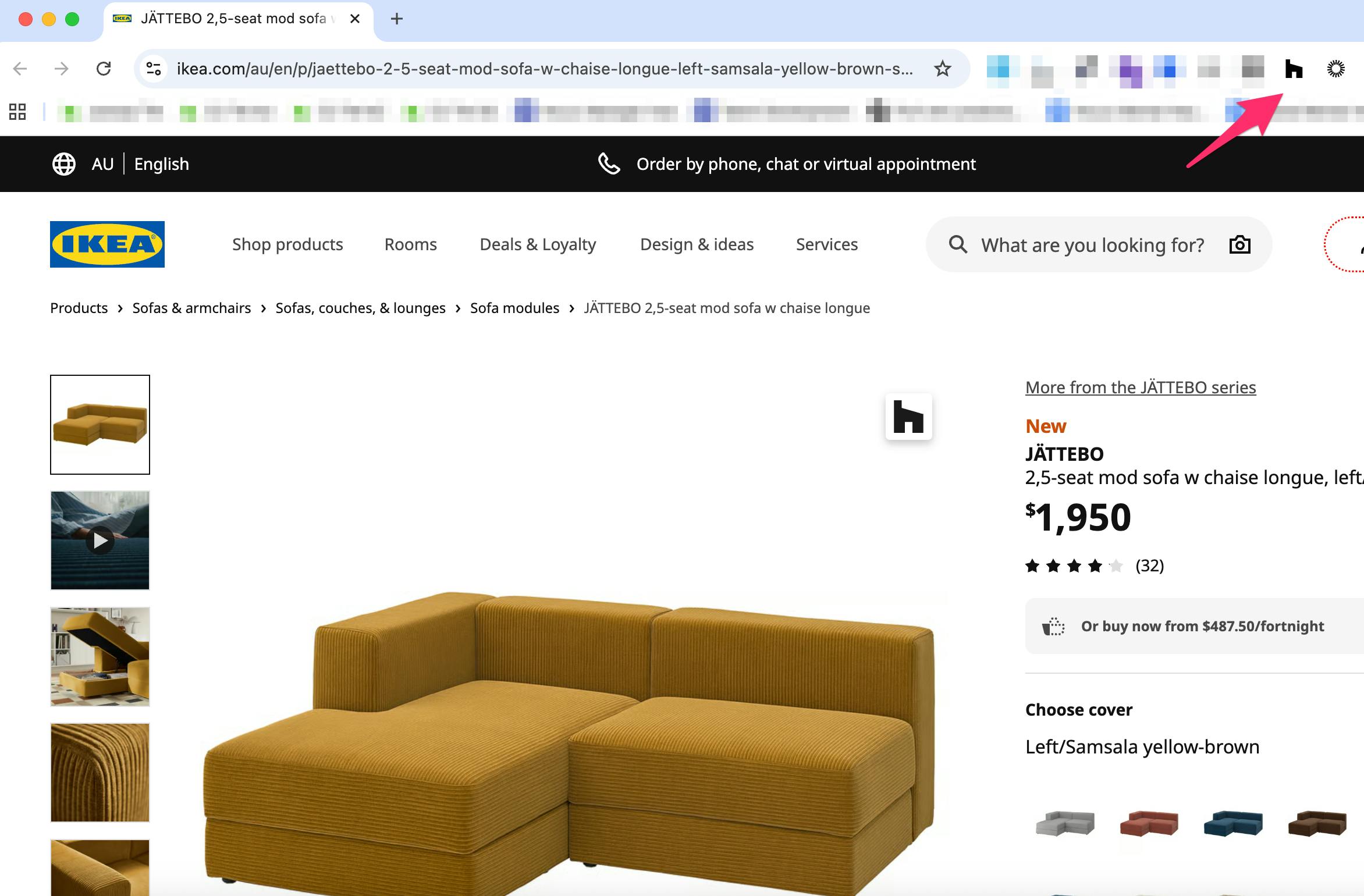 Once you've downloaded the Houzz Pro Clipper, you're ready to start clipping. While sourcing products online, simply click on the Clipper icon on the image you want to save, or click the pinned Clipper extension icon in your Chrome toolbar.