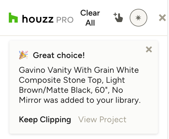 The Houzz Pro Clipper lets you save products from any site and add them to your Houzz Pro library. In this article, we’ll cover how to use the Clipper on a desktop device to source products and add them to your estimate/proposals, selections boards and more.